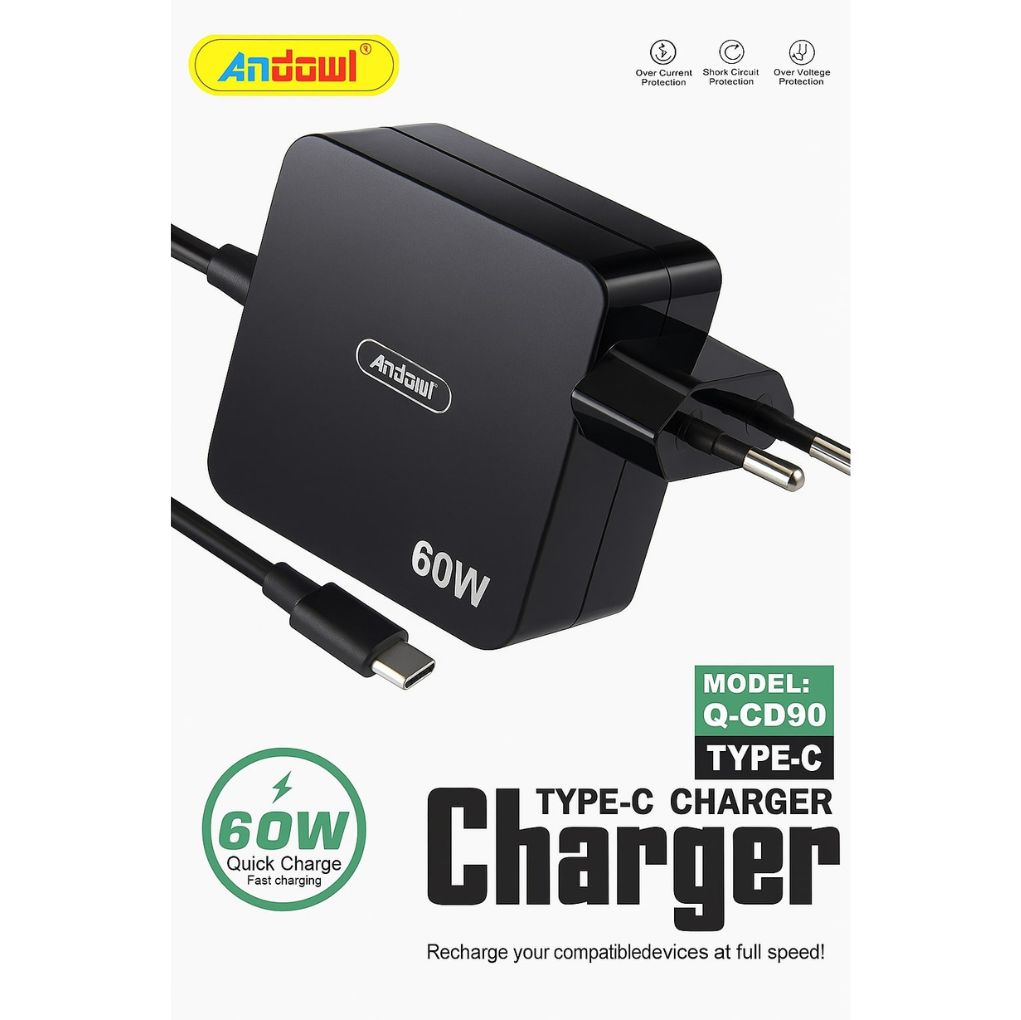 Power up your devices faster and more safely with the Andowl Q-CD90 60W Type-C Charger. Designed for modern tech users, this charger supports quick charging with a power output of 60 watts, making it ideal for smartphones, tablets, laptops, and other USB-C powered devices.
