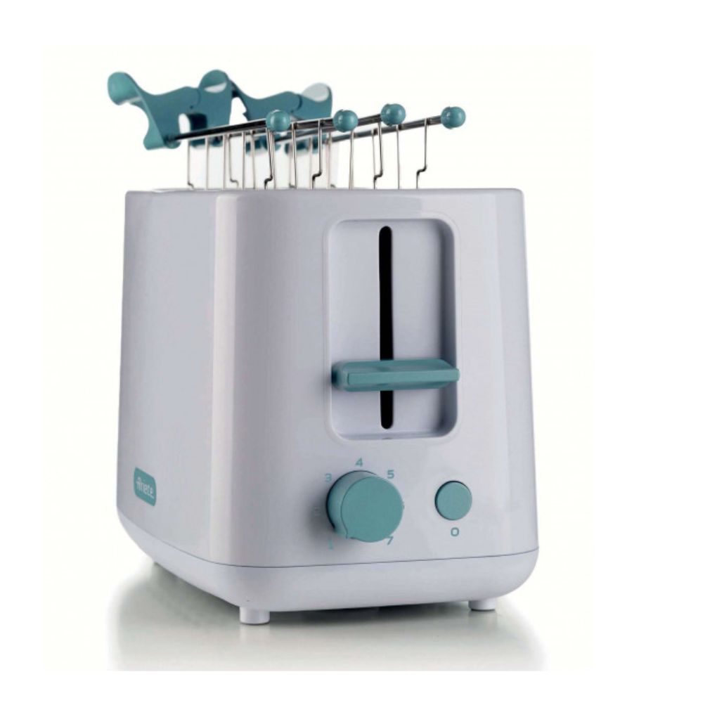 Enjoy the crispy taste of your toast prepared with the electric toaster, Breakfast Toaster . With the toaster for toasting you can prepare 2 slices of bread at the same time , thanks to the double slot, in just a few minutes. You can choose between the 7 browning levels selectable by the knob and, once ready, you can remove the toasted slices of bread thanks to the stainless steel tongs . If you want to stop operation immediately, you can use the Stop button and your toasts will come out immediately without waiting for the self-ejection.