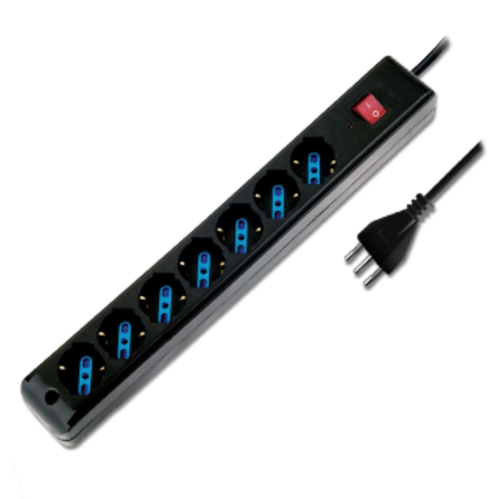 Seven practical sockets, designed diagonally Italian/European/Shuko with 10A/16A two-way connectors to connect any type of device. The Atlantis multi-socket strip, available in black and white, is a practical and safe solution even for the little ones.