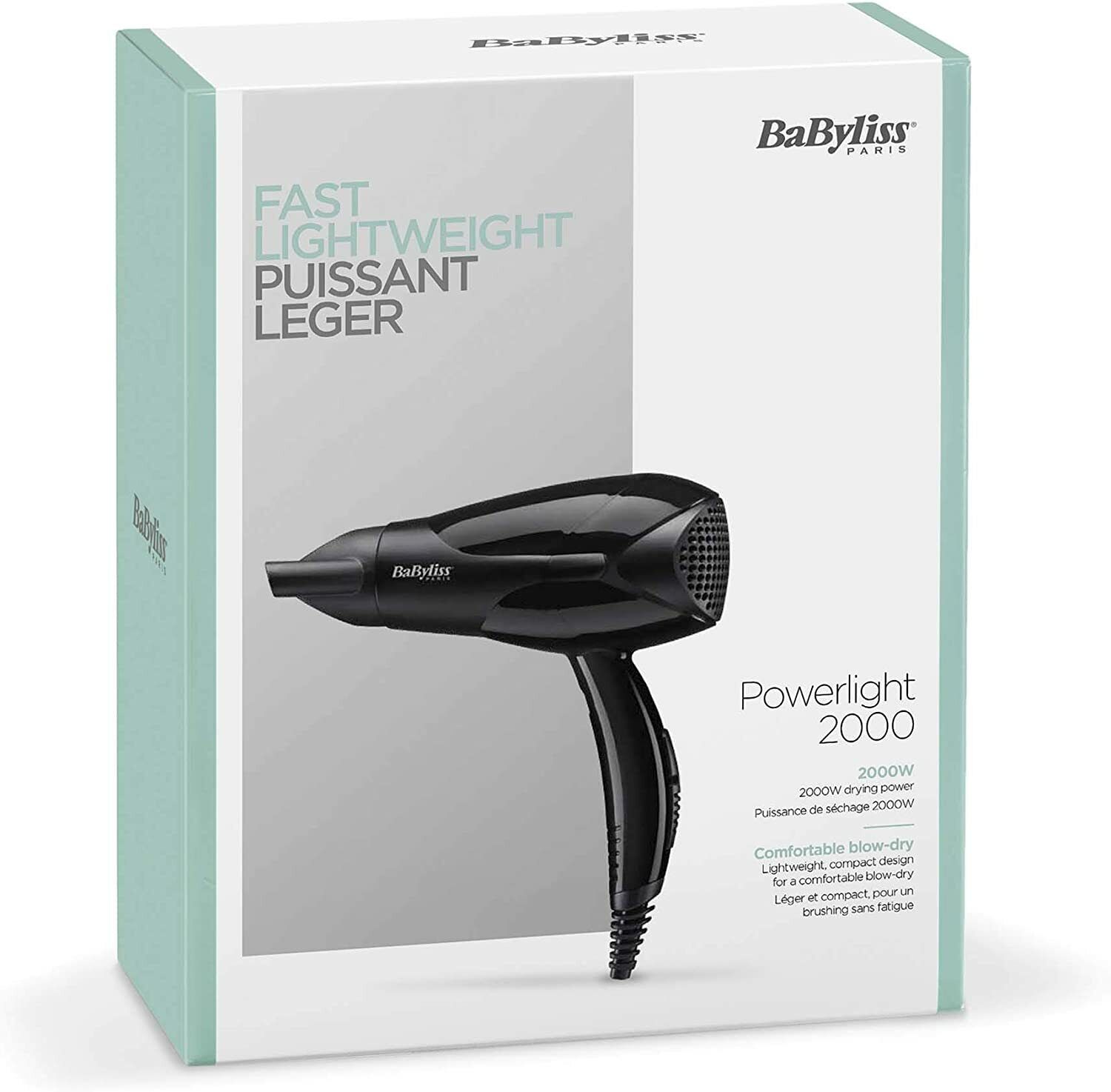 BaByliss D212E Powerlight 2000 Lightweight Hair Dryer with Compact Design, 2 Temperatures/Speeds,
