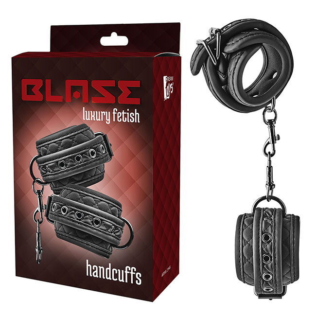 This pair of handcuffs from the Blaze collection of bondage products has a black