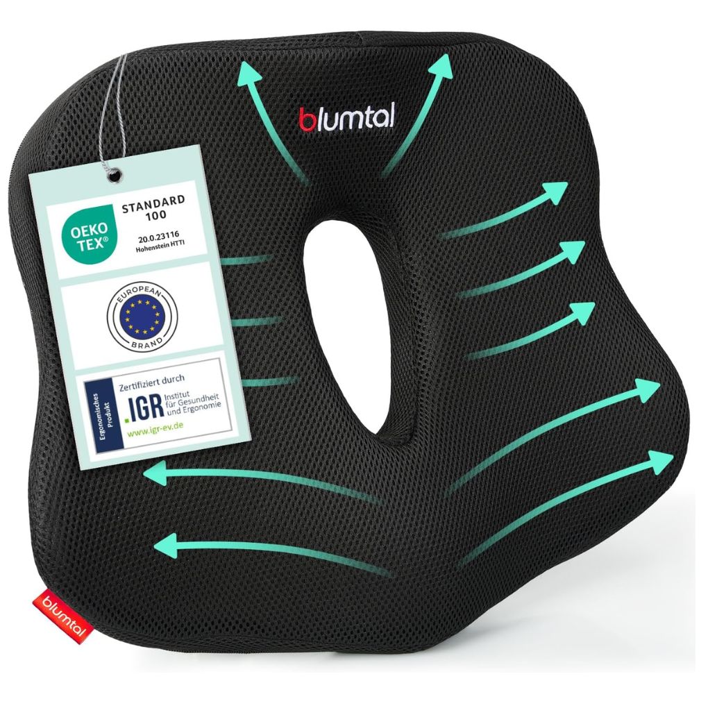 – OFFICE CHAIR CUSHION: The Blumtal office chair cushion for the coccyx supports the leg and buttock muscles, ensuring a correct sitting position. Thus, the cushion promotes an upright posture and reduces pain and pressure.