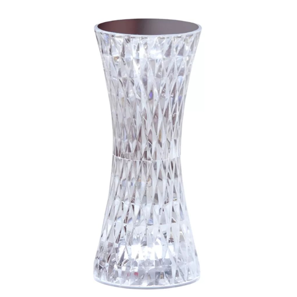 be easily recharged via USB. The elegant, crystal-like design of the lamp creates