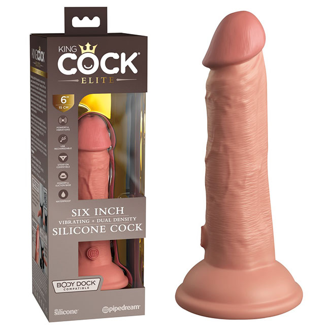 Vibrator 6″ Vibrating + Dual Density Silicone Cock by King Cock Elite in hyper-realistic