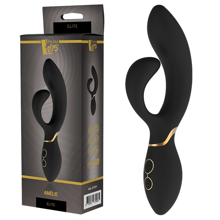 The Amélie vibrator from the Elite collection by Dream Toys is a black duo vibrator