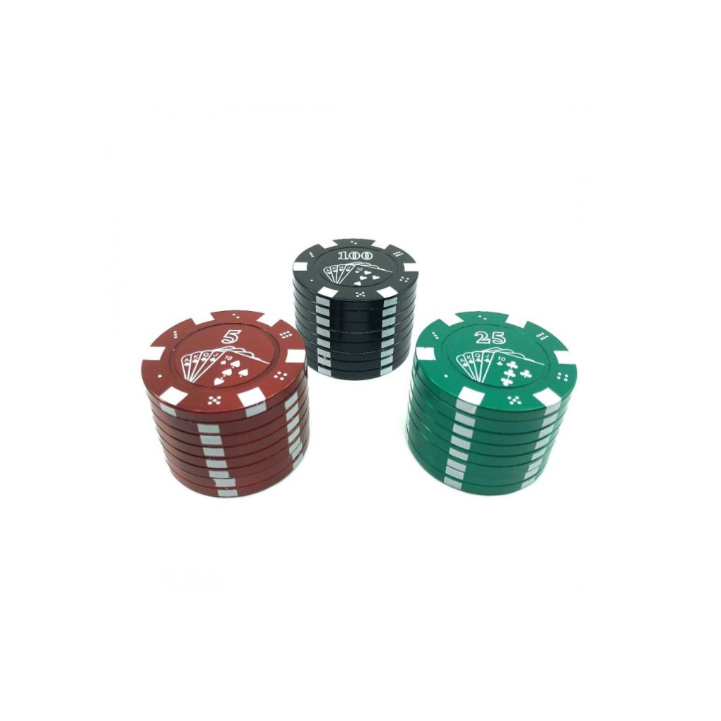 Grinder High Metal Poker Chips field composed of 3 metal parts, the upper part of which closes with a magnet and the other two parts with a quality wire, you will therefore have no problem to open and close the compartments easily. Measure 20x 42 mm in diameter. Available in three matching colors: black, red and green imitating poker tokens.