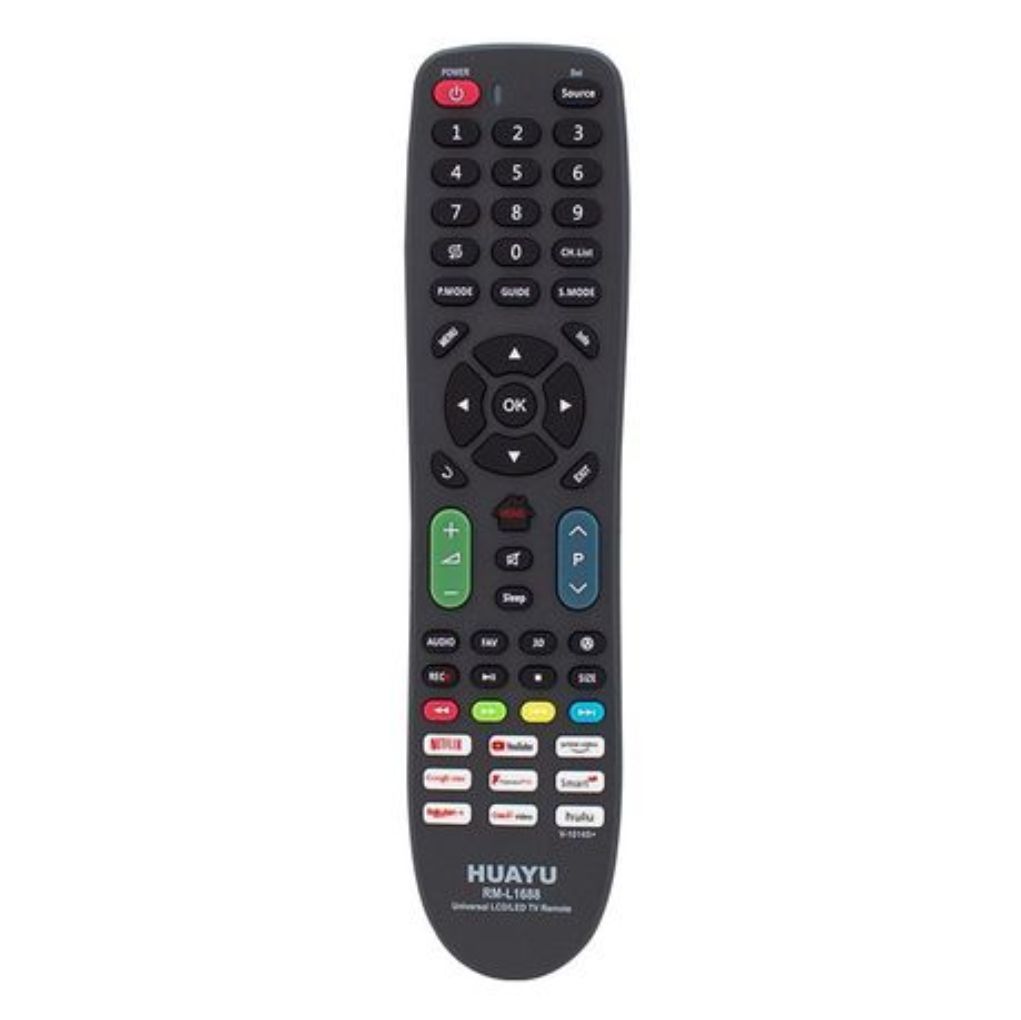 The HUAYU RM-L1688 Universal LCD/LED TV Remote is a versatile and easy-to-use controller designed to work with most LCD and LED TVs. It includes a full numeric keypad, navigation buttons, dedicated volume and channel controls, as well as shortcut keys for popular streaming platforms such as Netflix, YouTube, Prime Video, and Hulu. Featuring a sleek design, responsive buttons, and broad compatibility, this remote ensures smooth control of both standard TV functions and smart TV apps. Ideal as a replacement or backup remote. Setup instructions are clearly provided in the package.