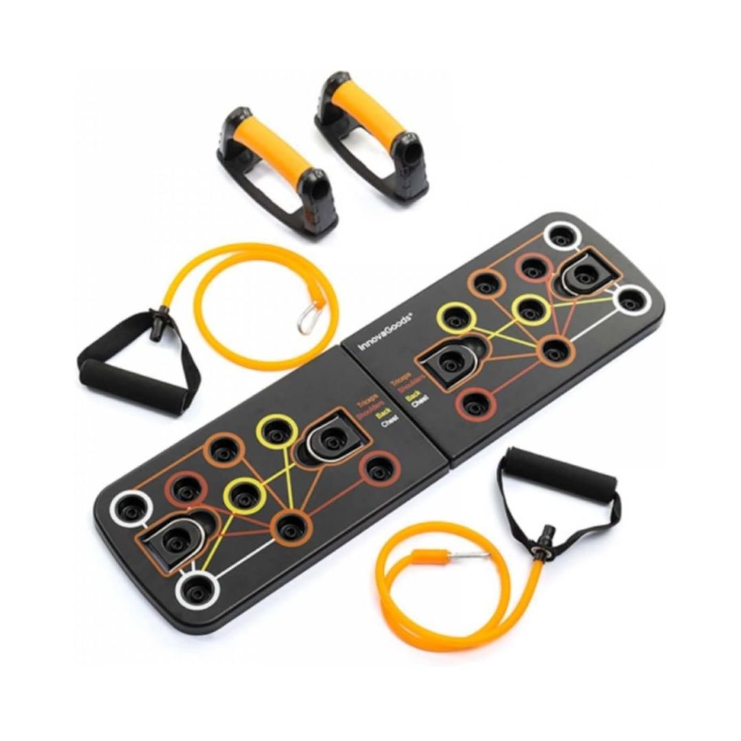 Increase your fitness from home with the multifunctional push-up board from InnovaGoods. Perfect for full body workouts including core, arms, legs and back. Compact design for easy transport and storage FLEXIBLE TAILORED TRAINING: With adjustable resistance bands for individual training intensity. Ideal for arm and leg exercises as well as for targeted strengthening of the chest, shoulders, back and triceps For indoor and outdoor use: take your workout with you wherever you go. Thanks to the practical and comfortable design, the push-up board is suitable for use both outdoors and indoors Versatility and comfort: easy to carry and store design with non-slip stickers for stability during exercise. Includes a sturdy bag for all the accessories With exercise guide for maximum results: The set includes comprehensive instructions to help you achieve the best training results. Ideal for beginners and advanced users who want to train at home