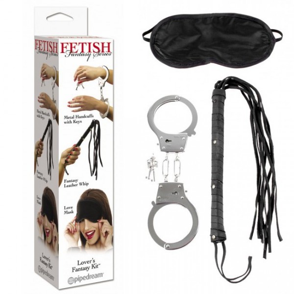 Live out some wild fantasies with the Lover’s Fantasy Kit. This perfect little kit contains 3 staples of bondage fantasy; a pair of heavy duty metal handcuffs with key, a leather multi-strand whip, and a blindfolding mask. The cuffs are adjustable, so they can be as playful or serious as you like it, and since they unlock with a key, you’ll know your lover is secure! The whip is made from quality leather, and the 8 thin strands can tickle or sting depending on how you flick it. The included mask adds a little sensory deprivation to the experience, and each piece can be used alone or together for a fully customizable playtime.