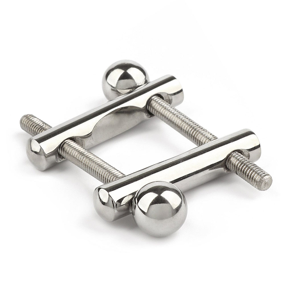 The Mr. Steel Nipple Clamps offer an intense and adjustable nipple play experience. Crafted from high-quality stainless steel, these clamps apply firm and even pressure, enhancing sensitivity and stimulation. The adjustable screw mechanism allows users to control the level of compression, making them suitable for both beginners and experienced BDSM enthusiasts. The smooth, polished surface ensures comfort while maintaining a secure grip. Whether used for light pinching or more intense sensation play, these clamps are designed to deliver heightened pleasure and restraint. Perfect for those exploring endurance and control in their sensory play. Always clean thoroughly before and after use for hygiene and safety.