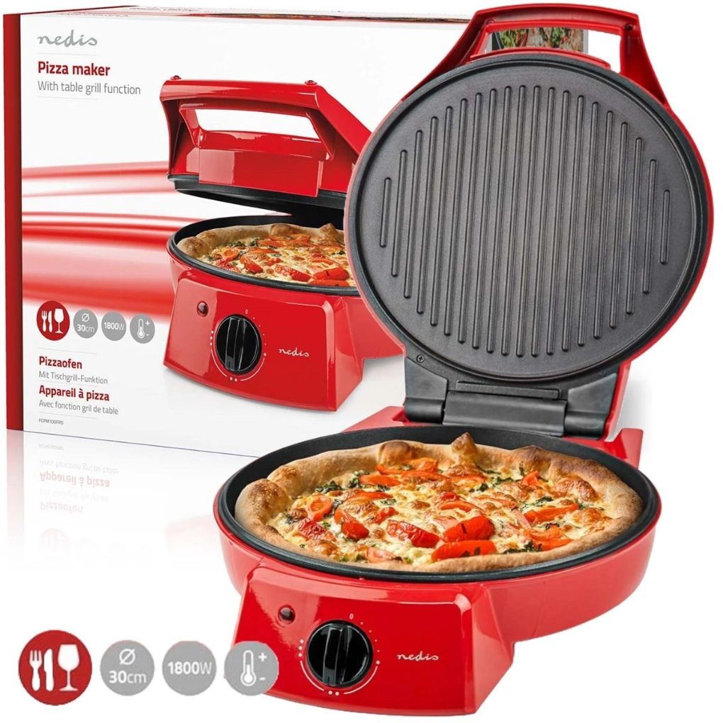 Create delicious homemade pizzas in under 10 minutes with the Nedis 1800W Pizza Maker. Featuring a spacious 30cm non-stick plate, adjustable temperature control, and fast heat-up, this appliance is perfect for pizzas, quesadillas, crepes, flatbreads, and table grilling. Its compact design makes it ideal for kitchens, small apartments, or quick family meals.