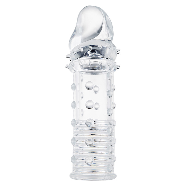 The transparent, studded sleeve provides him with a snug fit and extra stimulation,