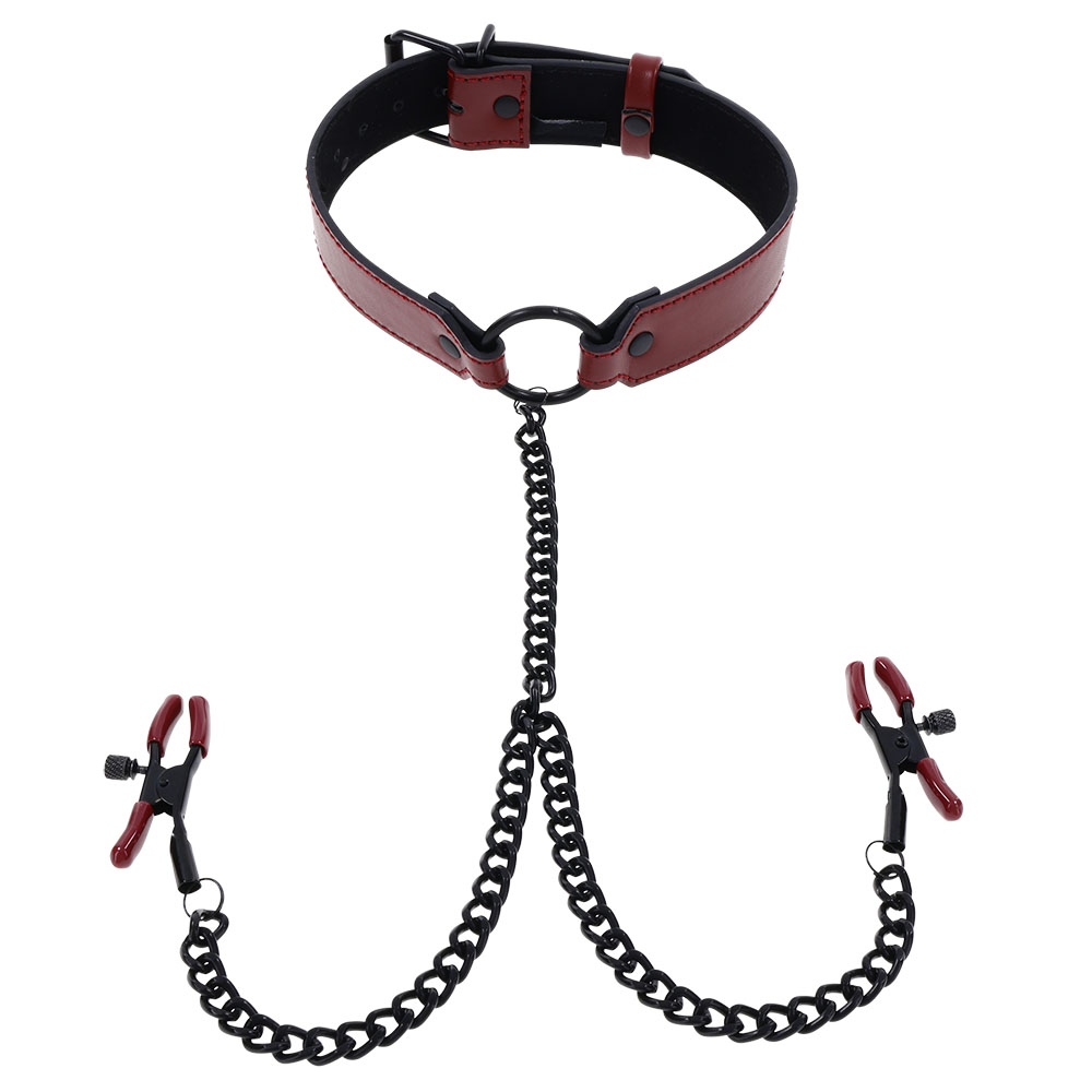 with the delicate chain, leading to the enticing nipple clamps, inviting you to
