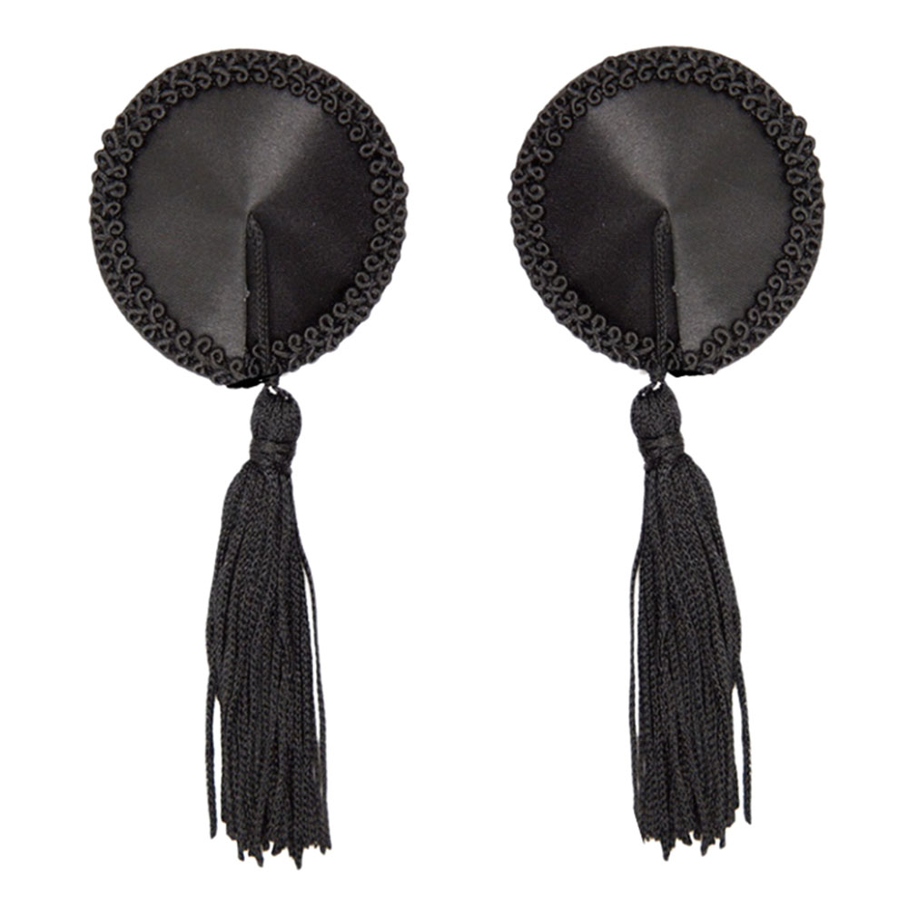Our pasties are made of black shiny fabric with a beautifully finished decorative