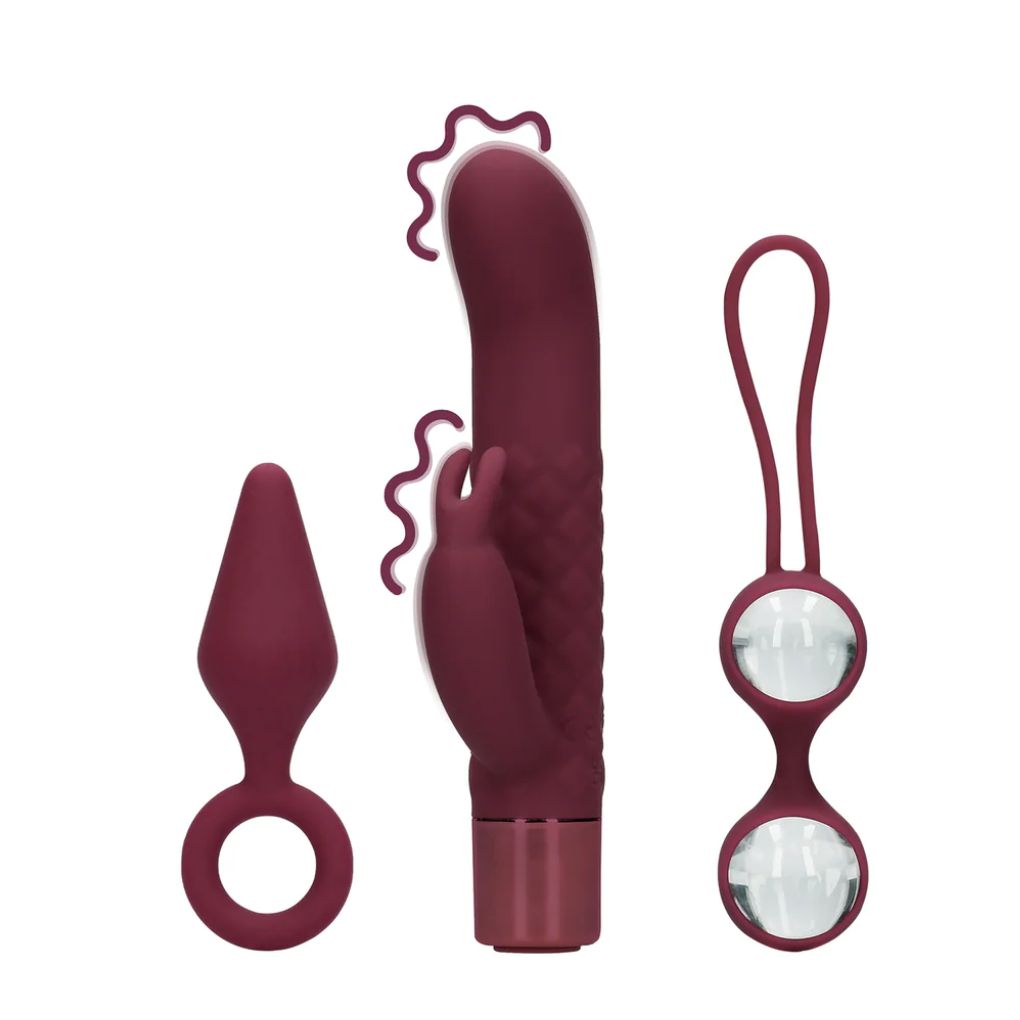 Each carefully selected toy is reusable so it’s the gift that keeps on giving. Includes a mini rabbit vibrator, kegel balls and a small anal plug.