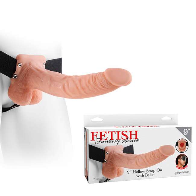 Series’ 9″ Hollow Strap-On with Balls. The comfortable elastic harness easily adjusts